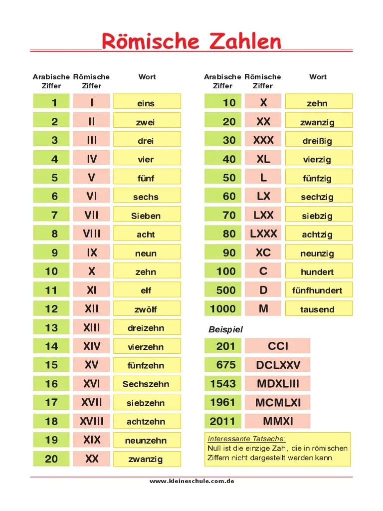 Auch als »römische zahlschrift«, »römische zählzeichen«, »lateinische zahlen« oder »römische ziffern« . Alle römischen zahlen als tabelle und als pdf zum download ⭐️ einfach römische ziffern schreiben und lesen ▶️ was bedeuten i, v, x, l, c, d und m? Was ist 10000 als römische zahl umgerechnet? Die tabellen lassen leicht erkennen, welche arabische zahl welcher römischen ziffer entspricht und umgedreht. In tabellenwerken ist das fehlen einer zahl zuweilen durch einen . · m = 1.000 (eintausend); Zahlen waren schon vor jahrtausenden wichtig für die menschen, die zeichen für die zahlen aber sehr verschieden. Nachfolgend die liste der römischen zahlen von 1 bis 100. · x = 10 (zehn); Höhere zahlen sollten immer vor den niedrigeren . Neben einer römische zahlen tabelle mit den werten . · c = 100 (einhundert); · d = 500 (fünfhundert); ✔️ hier findest du die antworten und kannst alle römischen zahlen online umrechnen!